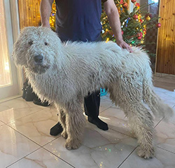 Ez a csupaszív, langaléta kölyök már fiatal kora ellenére is megmutatja, miért választották a komondorokat a pásztorkutyák sorában. Járőrözik a portán és figyeli a környezetét, jellemét a bátorság és a kíváncsiság egyaránt jellemzi.